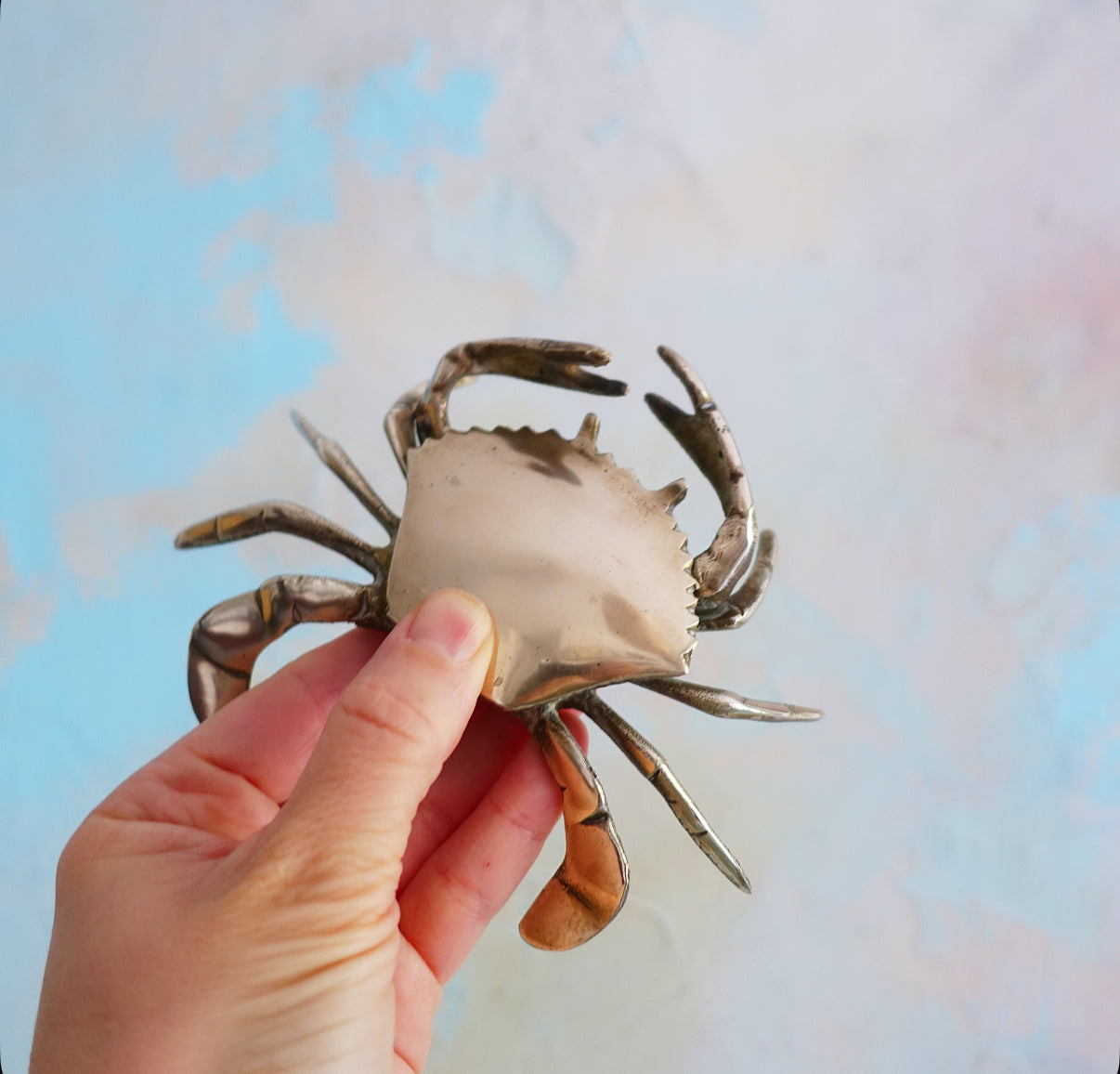 Small vintage brass crab ashtray/trinket dish, c.1970s/80s